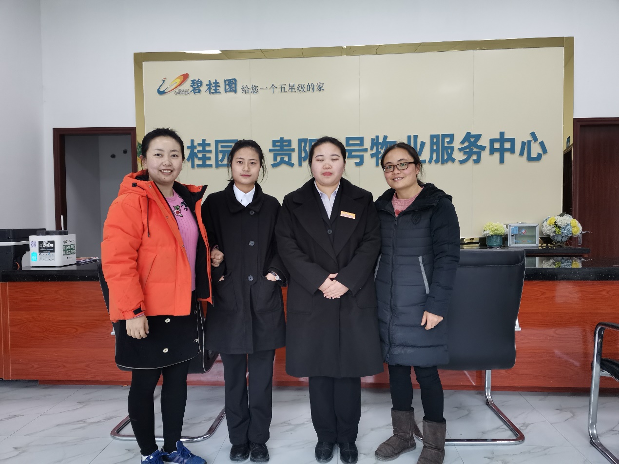 2019年1月3日,商业与贸易学院郭庆秋、张洋老师到贵阳碧桂园·贵阳1号物业管理中心实习的学生。在看望过程中,老师们非常关心学生的实习状况,发展前景,薪酬待遇以及学生居住的安全性。整个过程就以上关切点,教师与学生展开了充分的交流,学生表示:他们在物业管理中心实习比较稳定,中途无辞职学生;实习工作的内容比较具体,学生可以较易掌握工作要领;公司氛围好,领导关心员工,同事之间相处好。同时,学生也表示:该份工作虽然较易上手,但熟练之后,存在发展的瓶颈。针对这点,专任教师给与学生相应的就业指导,指出学生未来的发展路径,从而化解学生心中的疑惑。临别之前,老师们对学生特别强调平时应注意交通安全以及居住安全,并要保管好自己的私有财产。