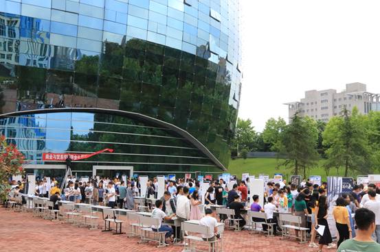双选会第二部分主要在图书馆广场前进行,参会的企业代表在广场前设置咨询点。同学们根据自己的专业、特长、兴趣等找到合适自己的企业去咨询,企业进行一对一解答。同学们对企业有了充分了解后投递简历,企业根据自身需要进行筛选,最终完成学生和企业之间的双选。