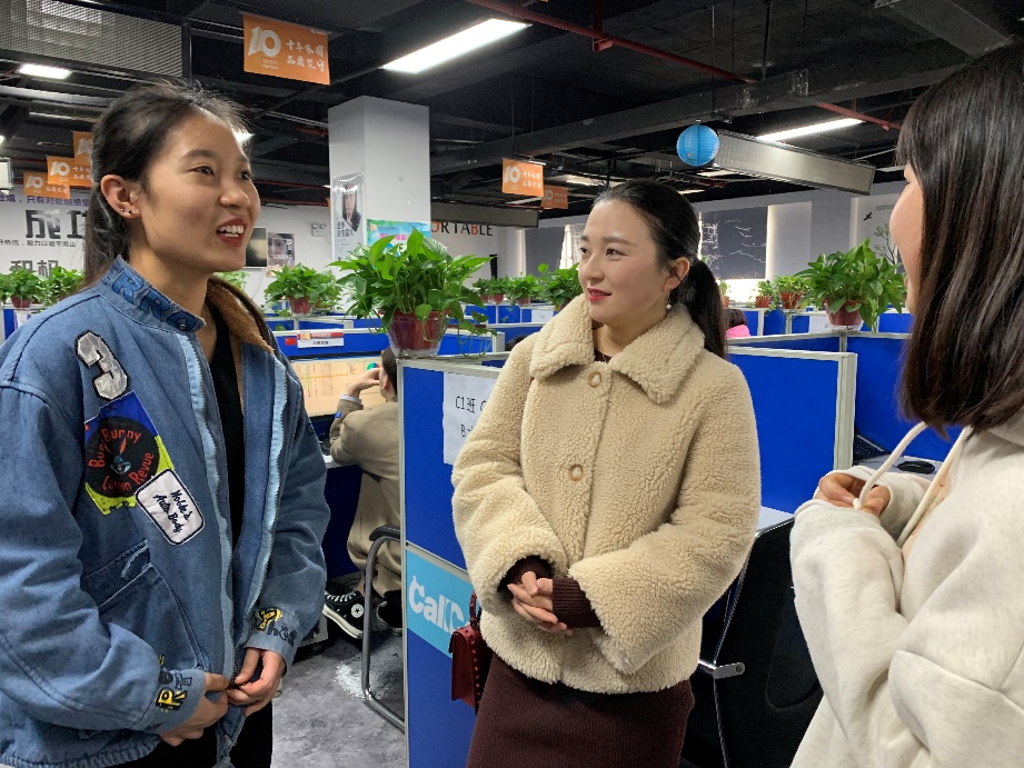 接下来,朱凯老师感谢企业对实习学生的关心,并和企业沟通学生工作情况;罗天兰老师就学生工作情况、生活情况、实习安全情况进行详细沟通;黄兰老师提出能不能和企业进一步深度合作,了解到,企业在金阳新开事业部,有非常大的人才需求。学生也表示在这里工作,工资待遇比较满意,休息也比较充足,学习到的时间技能非常实用。