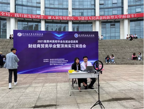 为进一步贯彻落实党史学习教育“学党史 悟思想 办实事 开新局”的理念,将党史学习教育理论成果与党总支教育教学工作紧密融合,以“为学生办实事”为出发点践行“我为群众办实事”,商业与贸易学院党总支、学校招生就业中心积极响应教育部2021届高校毕业生就业促进周系列活动要求,抓住毕业生求职关键时期,依托贵州现代商务职教集团等平台资源,联合贵州广播电视台公共频道《百姓就业》栏目,于2021年5月25日开展顶岗实习暨毕业生双选会,帮助学生更好地解决就业难题。