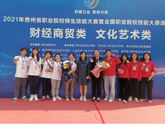 2021年5月7日-9日期间,贵州省教育厅主办的2021年贵州省职业院校师生技能大赛“会计技能”赛项、“智能财税”赛项分别在贵州轻工职业技术学院、贵州财经职业技术学院举行。来自全省各地州28支高职院校队伍参赛,商贸学院袁德臻院长领队,会计专业袁静和袁春燕老师指导的方安围、谭翠兰、张力、杨秀菊代表队经过三个赛段的激烈角逐,以贵州省第一名的成绩荣获“会计技能”赛项(高职组)团体一等奖,陈跃、陈美、蔡维倩、杨仪君代表队以第二名的成绩荣获“智能财税”赛项(高职组)团体一等奖。