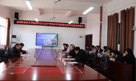 台江县中等职业学校副校长姚江春介绍了该校的基本办学经验、师生参加各类技能比赛所取得的成绩等情况。对贵州职业技术学院电子商务专业教师到校进行专业指导表示感谢。