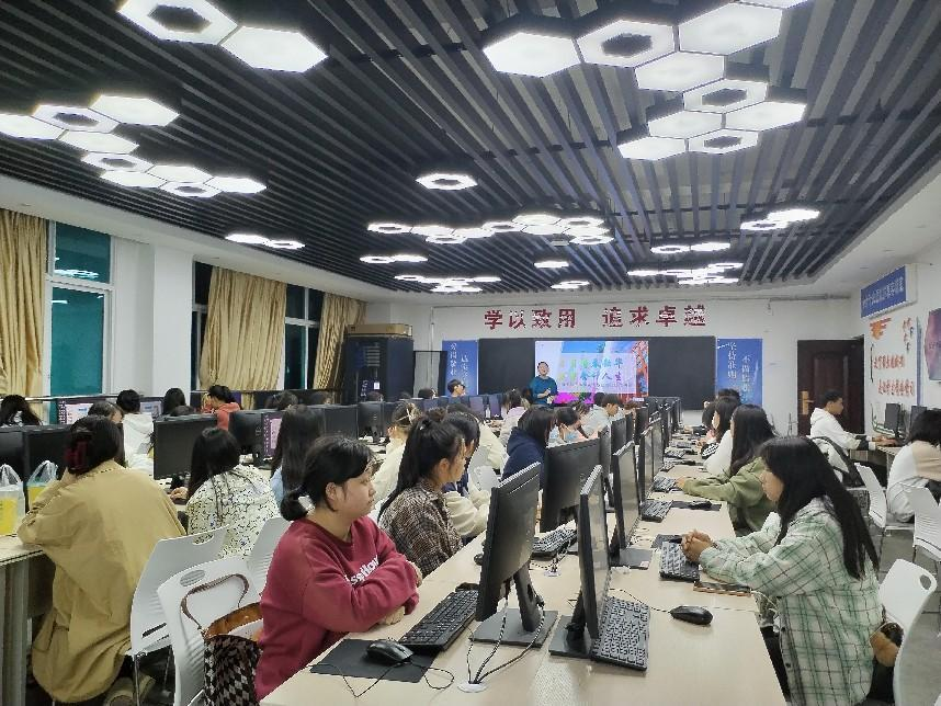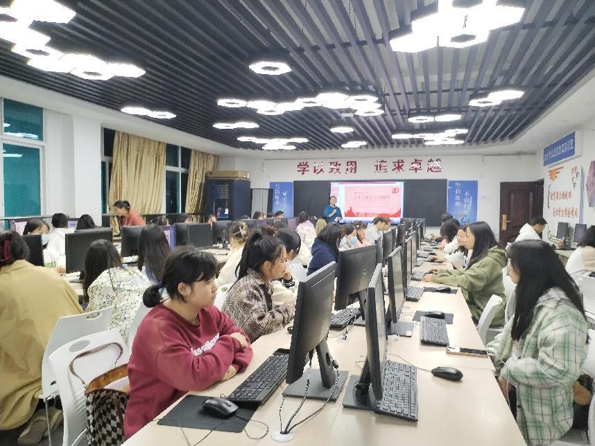 2022年11月13日晚19点,在笃行楼会计虚拟仿真实训室,商贸学院大数据与会计专业教研室副教授袁静老师结合党的二十大精神及习近平总书记在二十大报告中对青年的寄语,为2022级新生同学开展以“学习二十大精神,筑梦会计人生”为主题的讲座。