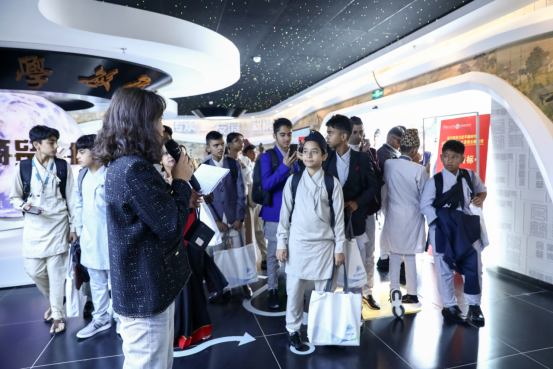 随后尼泊尔师生参观了学院全息体验馆,学院教师孔令杰讲解了全息体验馆包含的商业历史、商业策略、商业文化几个专题。