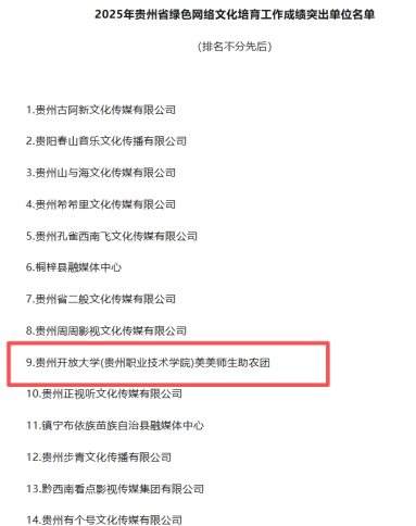 此次入选2025年贵州省绿色网络文化培育工作成绩突出单位,是对团队工作的认可,更是对未来的鞭策,学院将以此为契机,持续深化绿色网络文化建设,鼓励更多师生投身网络文明事业。