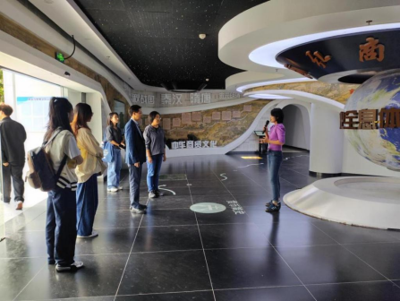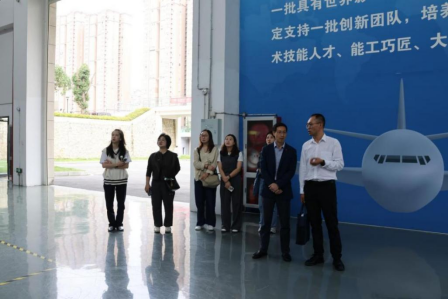 首先,到访人员到贵州民航产教融合开放实训基地,实地考察了航空模拟舱、维修实训区等教学场景;随后,一行人来到商贸文化全息体验馆,沉浸式领略商贸文化在教学中的创新应用。