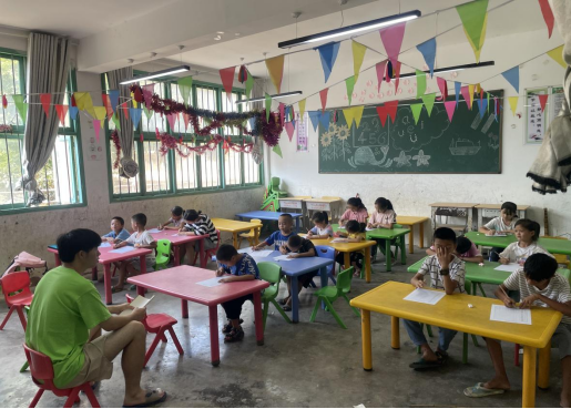 “大山小爱”是致力于贵州大山志愿支教服务的公益团队,2018年入驻板万,于2020年夏改建板万图书室并持续运营服务。志愿者们在实践期间加入“大山小爱”公益支教团队,在支持板万村教育的同时,与当地儿童进行体育交流、心理陪伴等,实实在在为当地做一些事,从青年学生视角助力板万村乡土软文化的重构。
