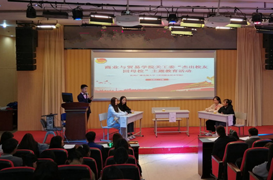 2020年11月7日,应学校关工委的邀请,商业与贸易学院2015级优秀毕业生丁娅回到母校,在学校图书馆二楼报告厅为学院青马培训班学员及学院学生会成员做了题为“自我提升之路-知识、能力到素养”的分享会。