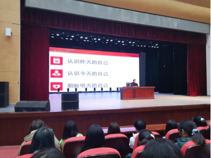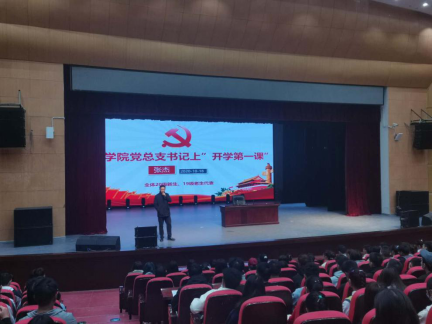 2020年10月18日上午10:00,商业与贸易学院党总支书记张杰老师在云潭南路校区大礼堂为2020级新生开展了以“新起点,新梦想,勇担当”为主题的开学第一课,商贸学院辅导员代表参加了此次授课。