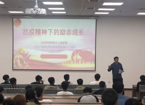 2020年6月9日19:00,商业与贸易学院党总支书记张杰老师在云潭南路校区科研楼229阶梯教室,为学院2019级返校的80余名学生上思政课。商贸学院全体辅导员参加了此次授课。