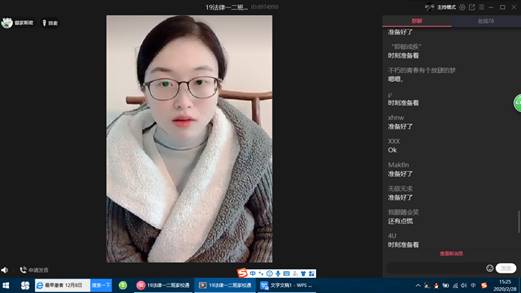 2020年2月28日15:00,在QQ群“2019法律事务家校群”,辅导员杨欢老师为我们法律事务19级四个班的205名同学召开本学期的第二次班会,也是本学期开学以来最特殊的一次班会——直播班会。