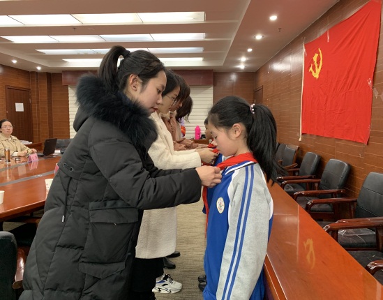 其后举行了“薪火相传”仪式,由商业与贸易学院党员教师代表为小箐小学少先队员代表佩戴红领巾,少先队员代表为党员教师代表佩戴党员党徽,象征着共产党精神代代相传、永不褪色。最后所有与会人员共同起立齐唱国歌。至此,本次签署仪式圆满完成。