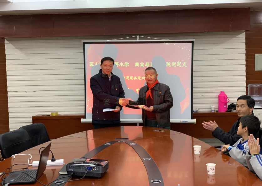 仪式后,商贸学院党总支书记就本次长期志愿服务合作项目向学院全体党员提出要求:在未来志愿服务项目中,党员教师要与合作方共同协作,旨在培养同我国发展的现实目标和未来方向相适应、有益于社会发展、文化传承、党组织建设所需求的一代又一代人才。