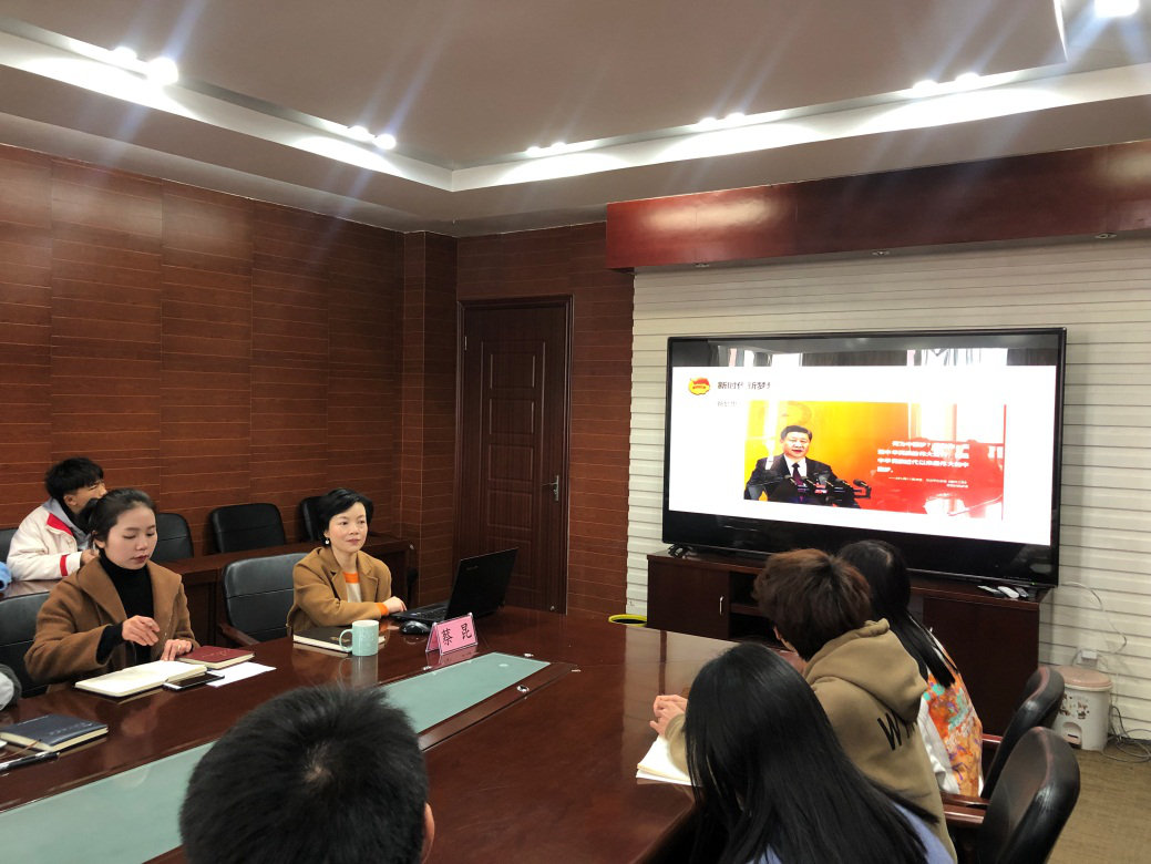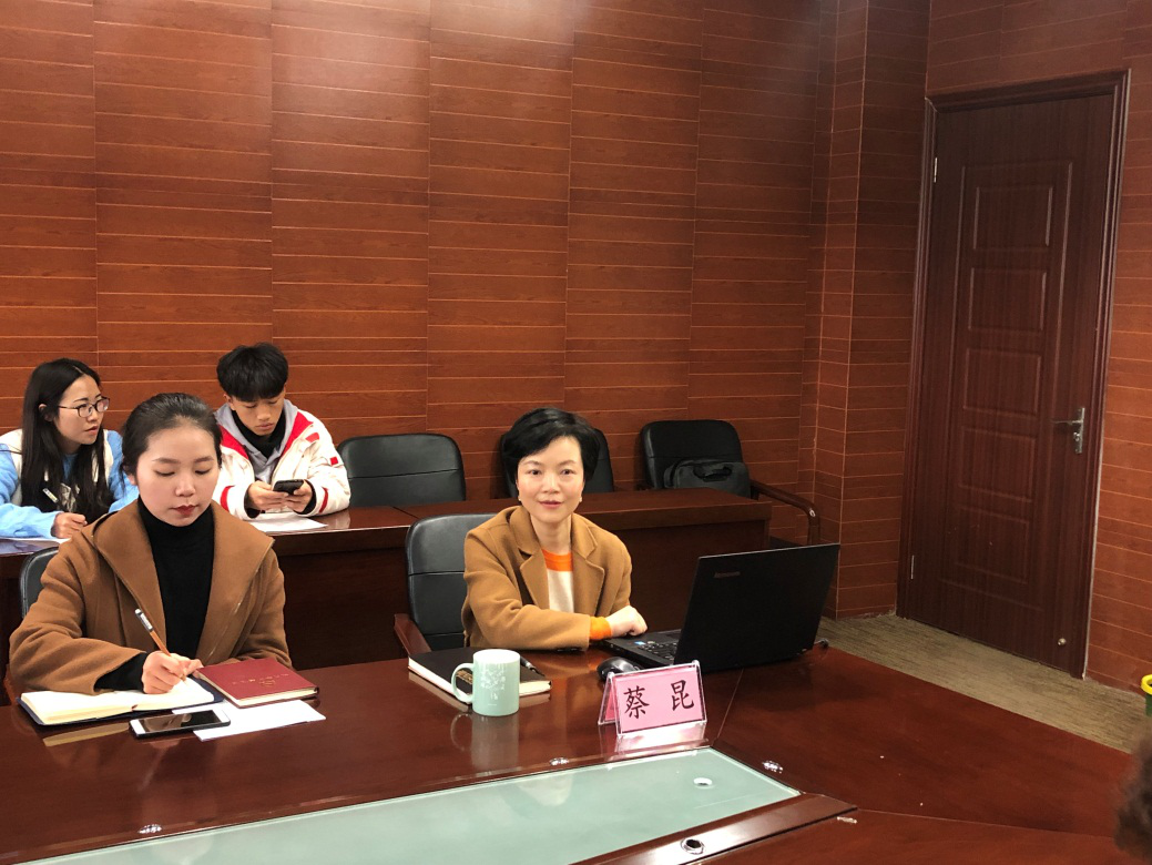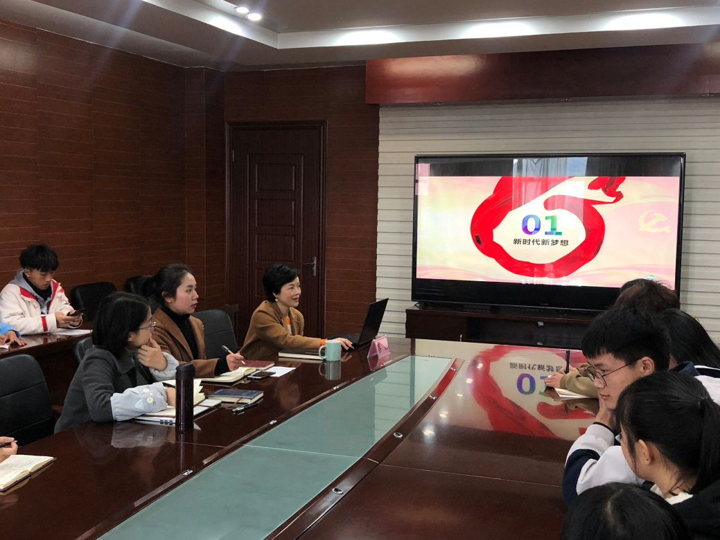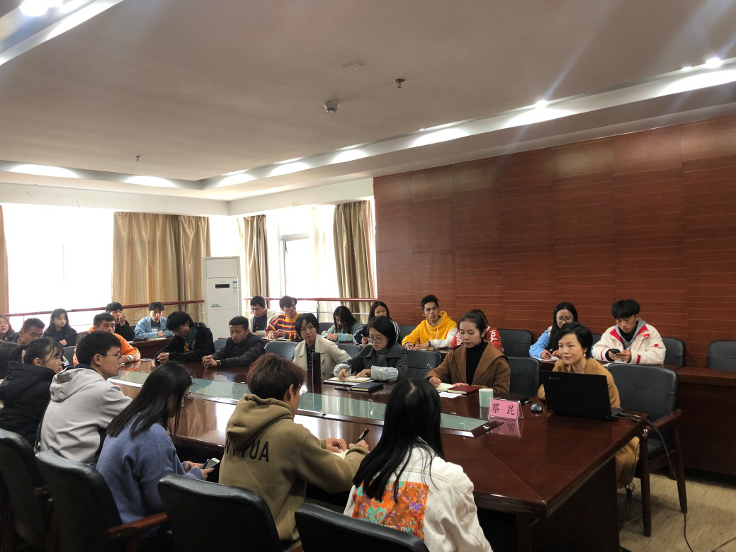 为了深入贯彻落实学校党委、团委对学生意识形态引导的工作安排,2019年12月13日12:40,商业与贸易学院副院长蔡昆老师在云潭南路校区六楼会议室,为学院2019级电子商务专业的学生干部举行了题为“青春梦,中国梦”的思政讲座,商业与贸易学院辅导员也参加了本次讲座。