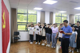 最后,在张杰书记的带领下,商贸学院2017级预备党员再次面对党旗进行入党宣誓,并进行了老党员为预备党员赠送党章、佩戴党员党徽的仪式。提醒即将走入人生新阶段的预备党员们,时刻以党员的高标准严格要求自己,“不忘初心、爱岗敬业”,不负党的培养与学院的厚望。