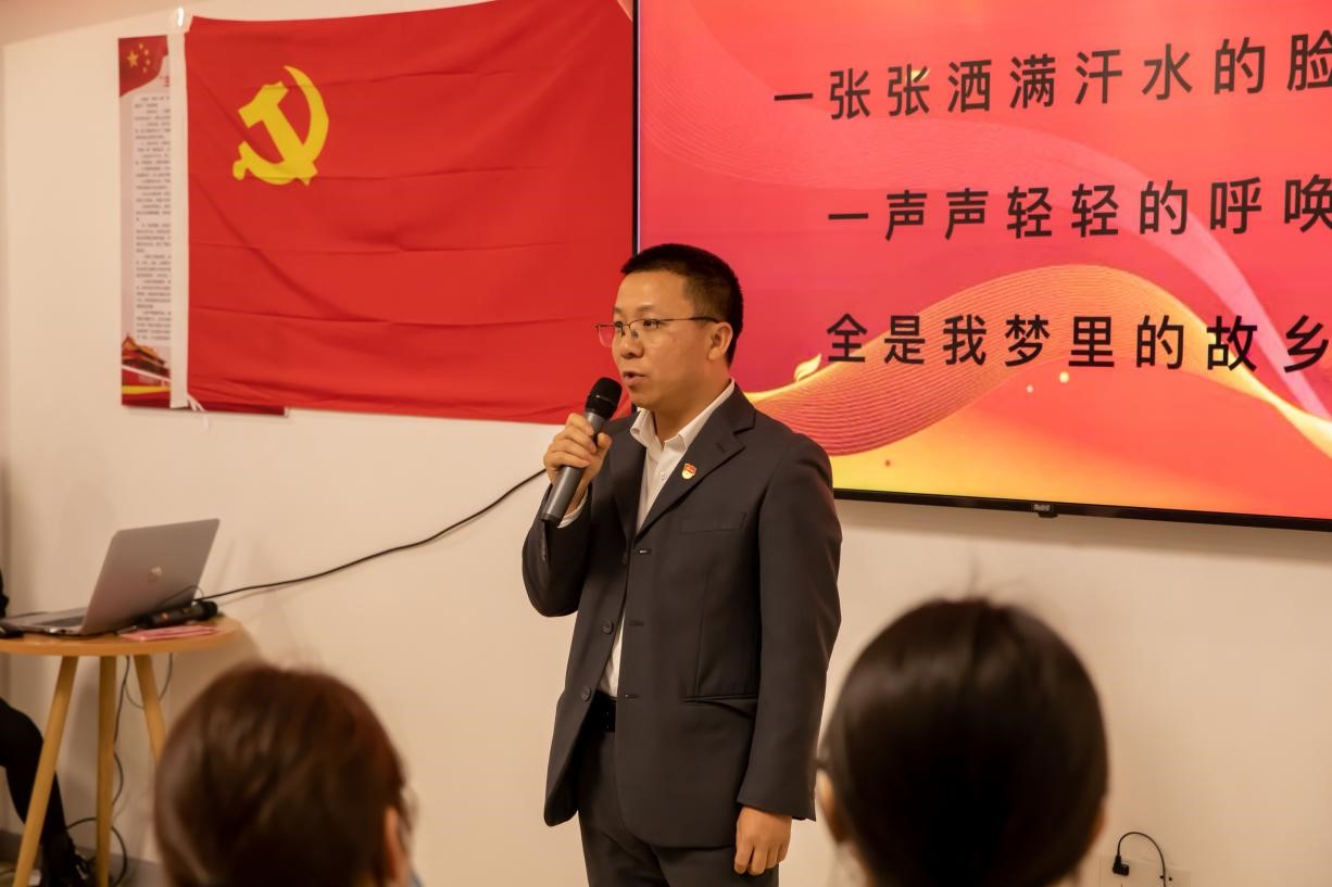 在主题党日第三篇章,商贸学院辅导员代表以朗诵形式现场演绎原创诗歌“梦回打郎”,朴实无华的字句中真实展现扶贫路上的艰辛与不易,诗歌作者、商贸学院党总支副书记、正处级组织员周显龙现场分享扶贫感悟,他表示作为一名党员,将继续牢记初心、不负使命,号召更多有志青年走到基层、扎根基层、建设基层,去到党和国家最需要的地方贡献青春智慧!