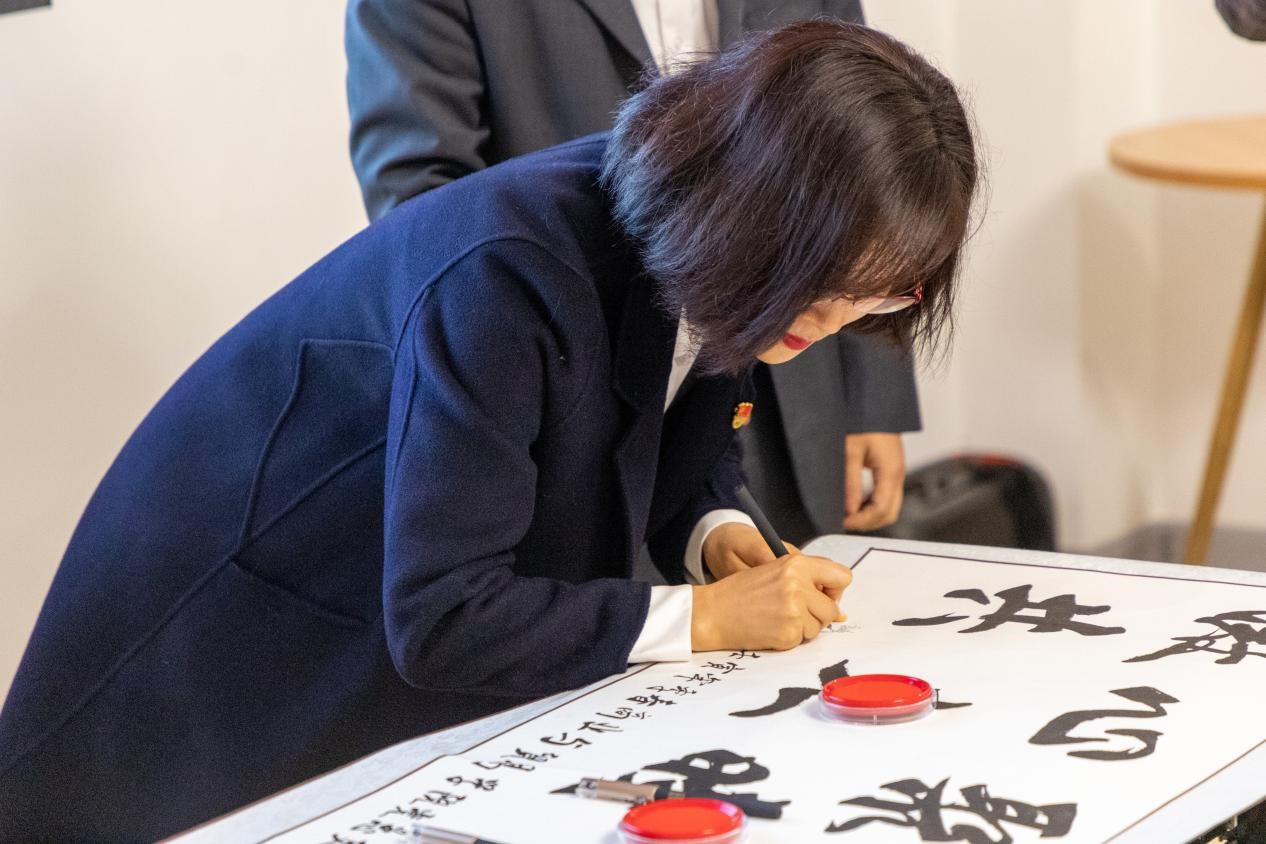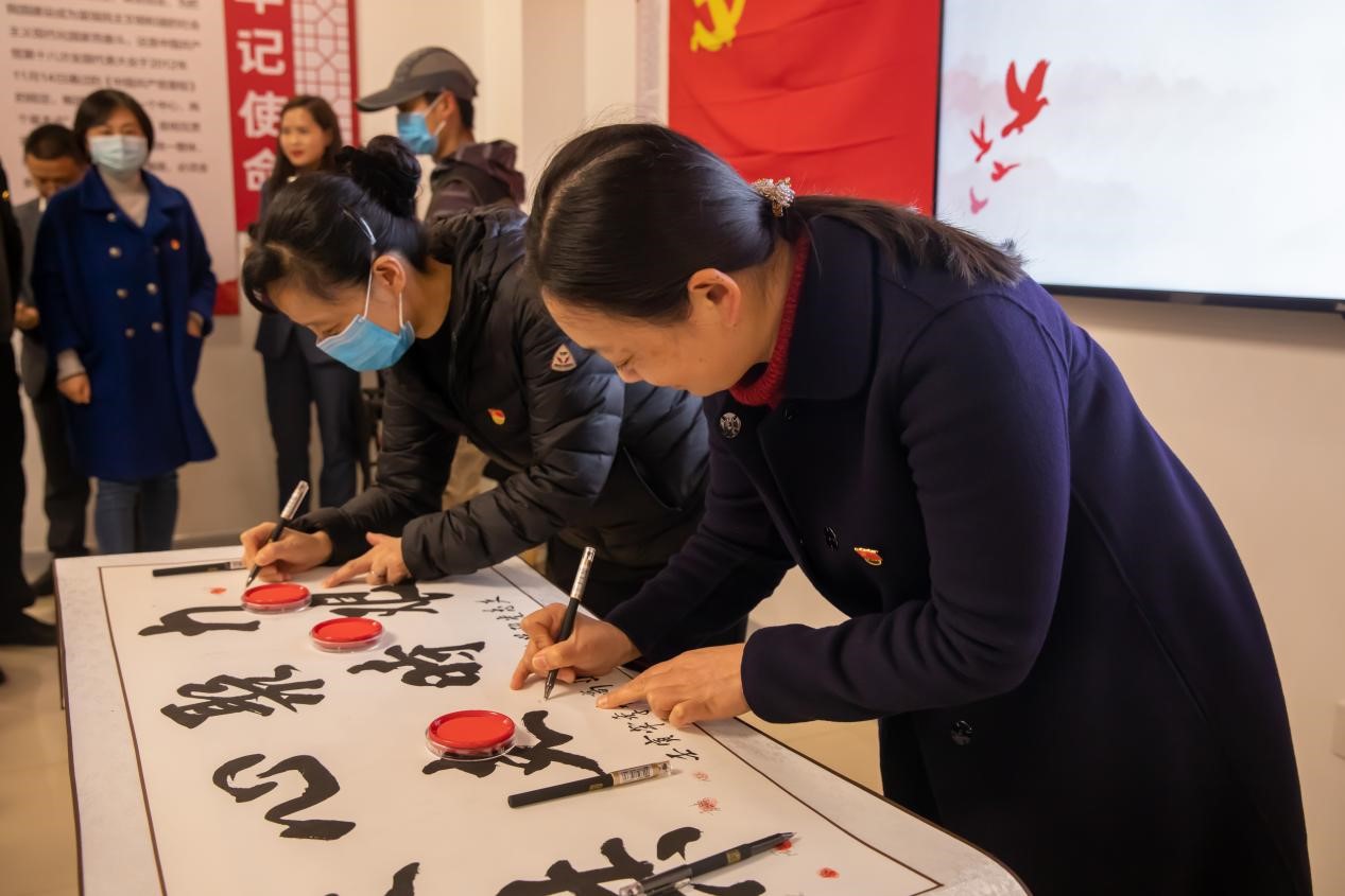 学生入党积极分子现场题字“凝心聚力 共克时艰”,将主题党日活动推向高潮。面对疫情防控和校园安全稳定的严峻挑战,学院全体党员共同留字,同时邀请观摩领导、党支部代表见证商贸学院党总支“对党忠诚、为党分忧、为民造福”的决心。随后,邓咏梅带领学院党员进行“抗疫宣誓”,在疫情防控工作中做到“听党话、跟党走、感党恩”,立足岗位、坚守职责。