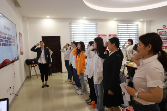 本次主题党日活动由四个活动流程。首先是重温入党誓词。申小芳同志带领全体参会同志面向党旗庄重的重温入党誓词,认真回顾申请入党时的思想激情和奋斗追求,回顾入党宣誓时的庄严承诺和坚定决心。