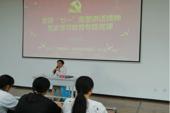 2021年9月8日,为深入学习贯彻习近平总书记在庆祝中国共产党成立100周年大会上的重要讲话精神,引导广大师生学史明理、学史增信、学史崇德、学史力行,学校党委委员、组织部部长张仁俊同志在科研楼229教室为师生带来了一次发人深省的党史学习教育专题党课,深入学习习近平总书记“七一”重要讲话精神。商业与贸易学院党总支书记张杰同志,正处级组织员、党总支副书记周显龙同志,组织部副部长付磐石同志、商业与贸易学院学生第二党支部全体党员以及2020级全体入党积极分子参加了此次党课。