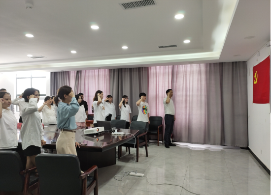 随后,预备党员面对鲜红的党旗,在领誓人张杰同志的带领下庄严宣誓,表达了他们对党的无限忠诚与热爱。