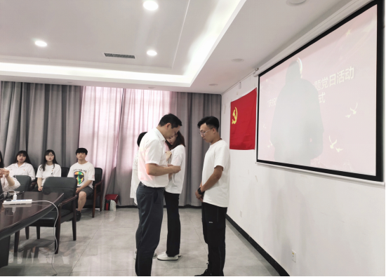 戴上的是党徽,承载的是责任与担当。首先,由张杰书记和正处级专职组织员刘婕老师为新党员代表佩戴党员徽章。佩戴党员徽章,意味着要亮明党员身份,作为一名年轻党员,不仅要充分发挥党员先锋模范作用,自觉接受群众监督。更要有所作为,积极主动,增强党员意识,处处起到表率作用,为党旗增彩,为党徽增光。