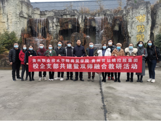 为深化产教融合,促进校企党支部共同发展,增强党组织的向心力和战斗力,2021年1月25日,学校商业与贸易学院前往贵州苗姑娘控股集团开展校企支部共建暨双师融合教研活动。商业与贸易学院党总支书记张杰,副书记、副院长袁德臻,副院长黄守峰及电商营销教研室党支部相关教师参加了活动。贵州苗姑娘控股集团董事长何庆洪、苗姑娘新零售有限公司总经理何锦康及企业相关负责人出席了本次共建活动。