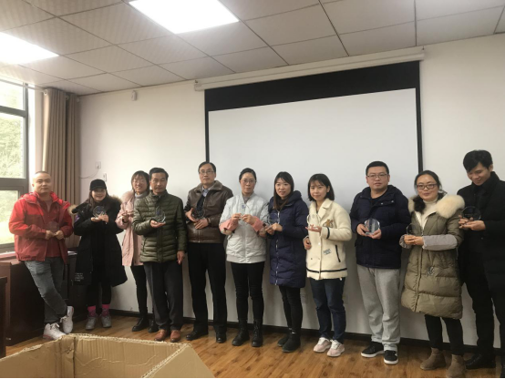 2020年12月1日,在科研楼232会议室,商业与贸易学院党总支为学院入党时间为9-12月份的党员老师们送上一份特殊的“政治生日”礼物--党员“政治生日”水晶座台。