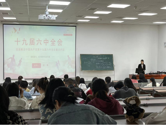 本次党课主要围绕学习党的十九届六中全会公报展开。陆菁老师首先简要介绍了十九届六中全会,解释十九届六中全会的含义及其主要议程;随后解读本次大会通过的两项重大决议《中共中央关于党的百年奋斗重大成就和历史经验的决议》《关于召开党的第二十次全国代表大会的决议》;最后就《中共中央关于党的百年奋斗重大成就和历史经验的决议(讨论稿)》解答为何要总结党的百年奋斗重大成就和历史经验的问题,详述中国共产党百年奋斗的历程,中国共产党百年奋斗的历史意义以及宝贵经验。