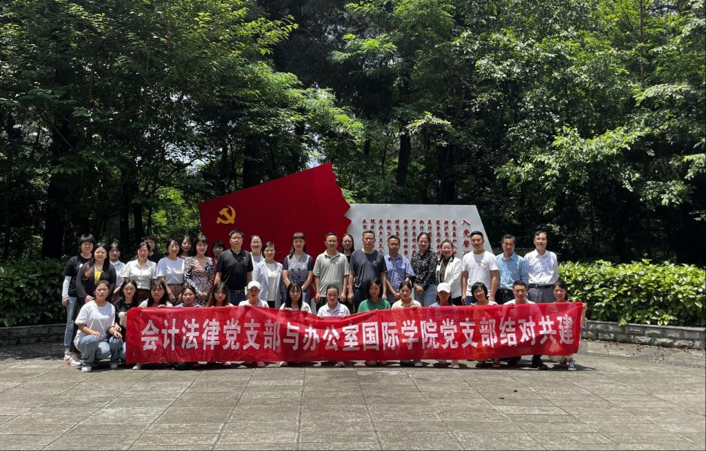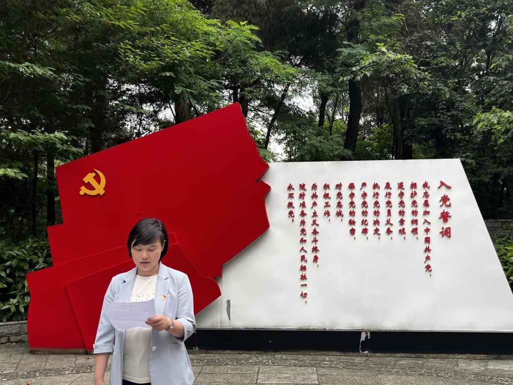 为庆祝中国共产党建党101周年,回顾党的光辉历史,增强党员意识,激发党建活力,发挥教师党员的先锋模范带头作用,增强入党积极分子的凝聚力,展示党员不忘初心跟党走的决心,6月21日中午,会计法律党支部在学校廉政文化公园初心广场举行“我用初心庆七一 喜迎党的二十大”主题党日活动。此次活动与办公室国际学院党支部联建,民主党派代表、群众代表及学生入党积极分子参加。