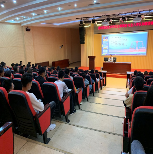 为了让2019级法律事务专业新生对本专业的学习、就业以及其他相关情况有更为清晰和更为完整的认识,并对2019级新生未来在学校的学习和生活进行方向性地引导,法律教研室于2019年10月9日晚上19:00在图书馆报告厅为法律事务专业2019级新生开展了一场别开生面的入学及专业认知专题知识讲座。