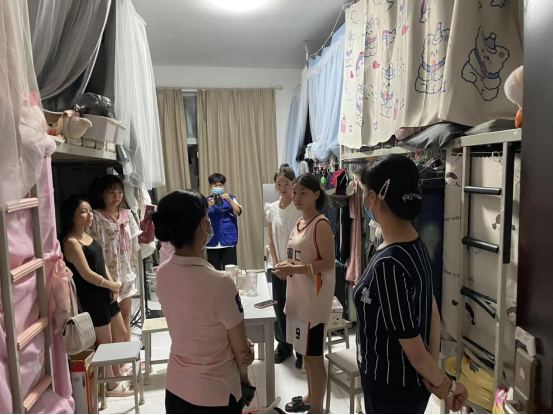 为深入了解学生思想动态,切实做好学生寝室的疫情防控工作,引导全体在校学生平安度过防疫封控时期,2022年9月7日,贵州职业技术学院组织部部长张仁俊同志到我院开展了“校领导深入学校寝室慰问”的活动。学院党总支书记邓永梅、学院院长袁德臻共同来到学生寝室公寓,走访慰问疫情期间的在校学生,为学生们送去了亲切的关怀。