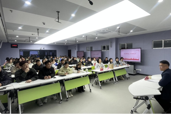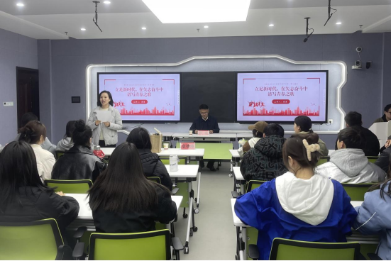 千红万紫安排著,只待新雷第一声。学校党委委员、副校长周勇走上讲台,以“坚定信心,立足新时代,在矢志奋斗中谱写青春之歌”为主题,为商业与贸易学院学生讲授2024年春季学期“开学第一课”。