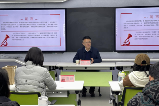 “理想信念不是在真空中来实践的,而是要在当今的时代背景下开展实践”,周勇副校长要求同学们主动关心国家大事,关注当前的社会经济形势和发展形势,站稳政治立场,一切从实际出发,实事求是,尊重实践是马克思主义最基本的原则。